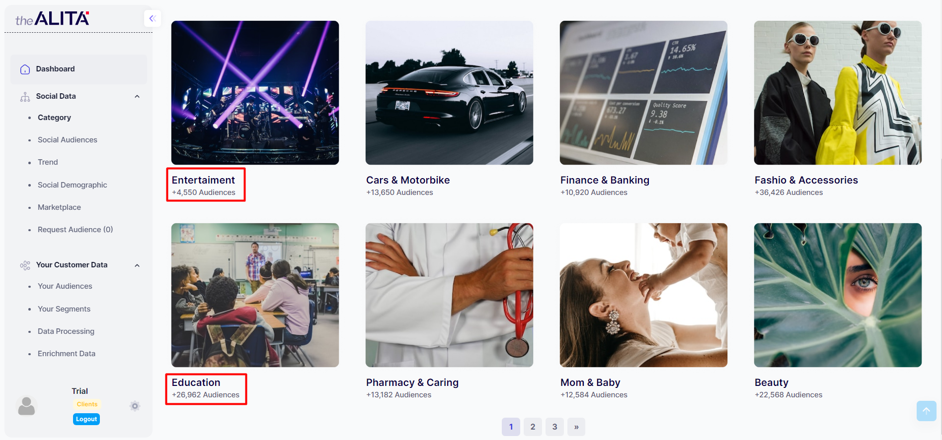 Search audience from categories