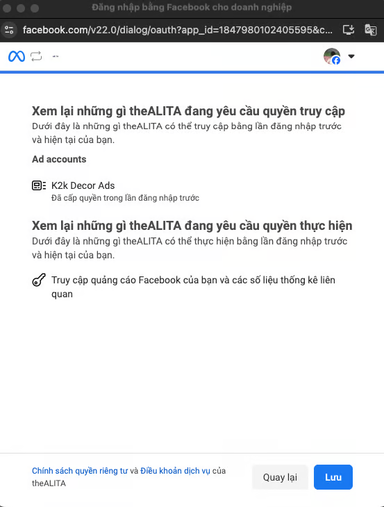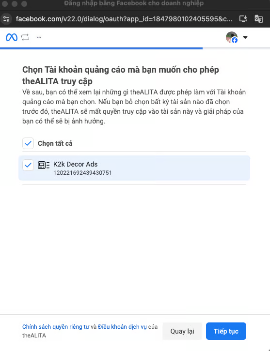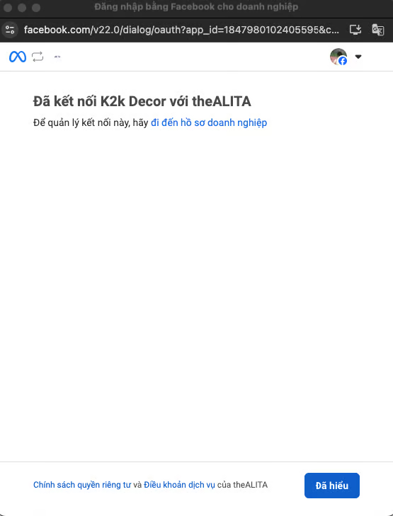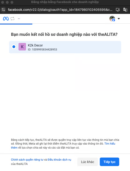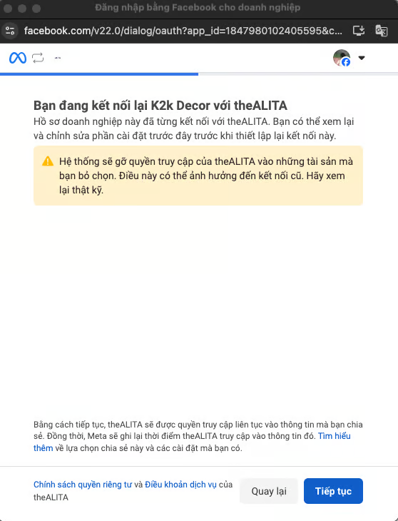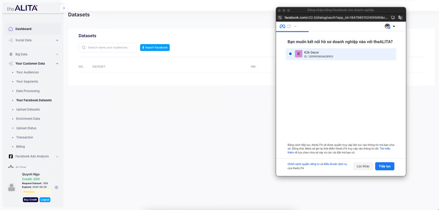 ## 2. Connect Facebook Account with theAlita