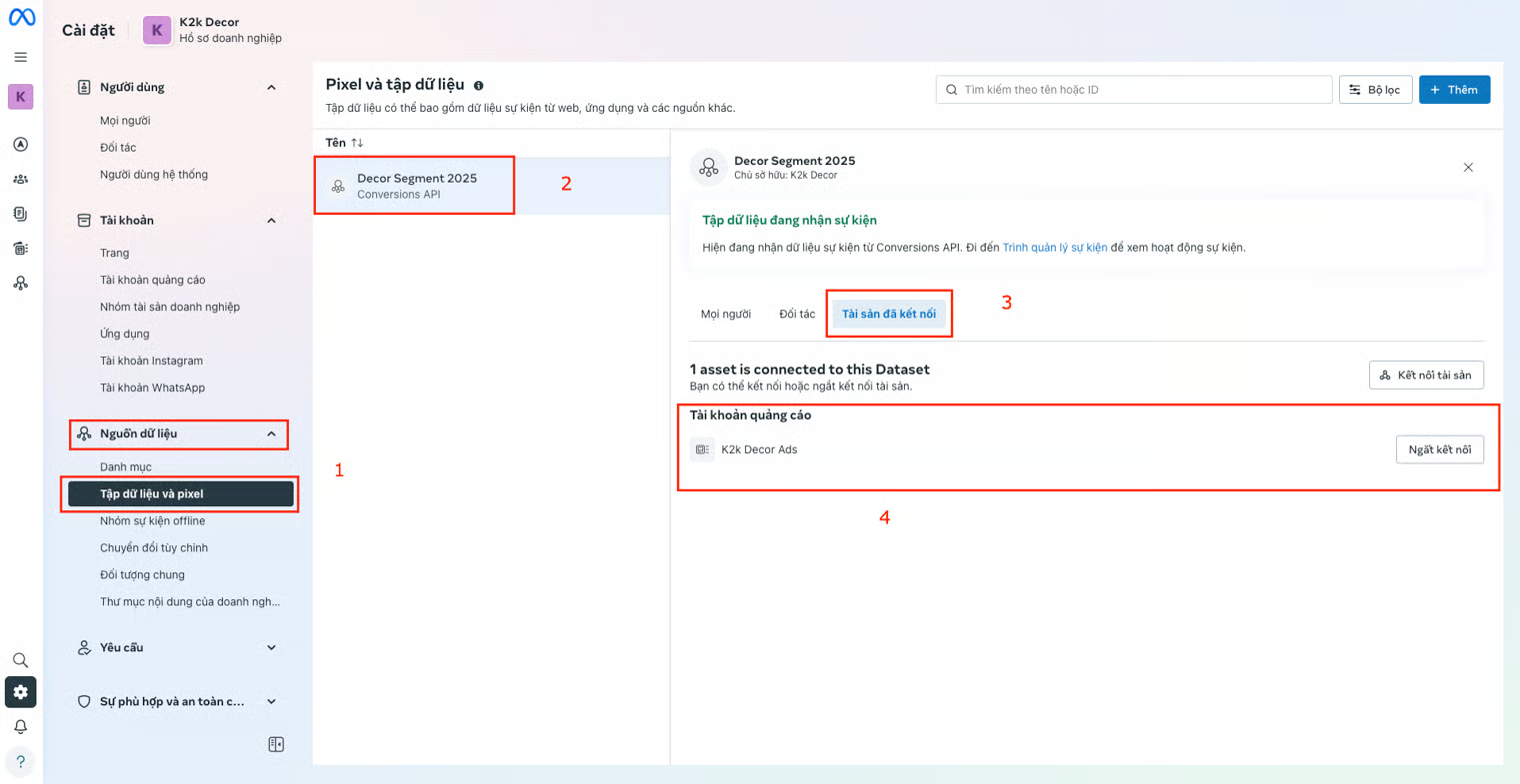 4. **Connect your Facebook ad account** with the Dataset.