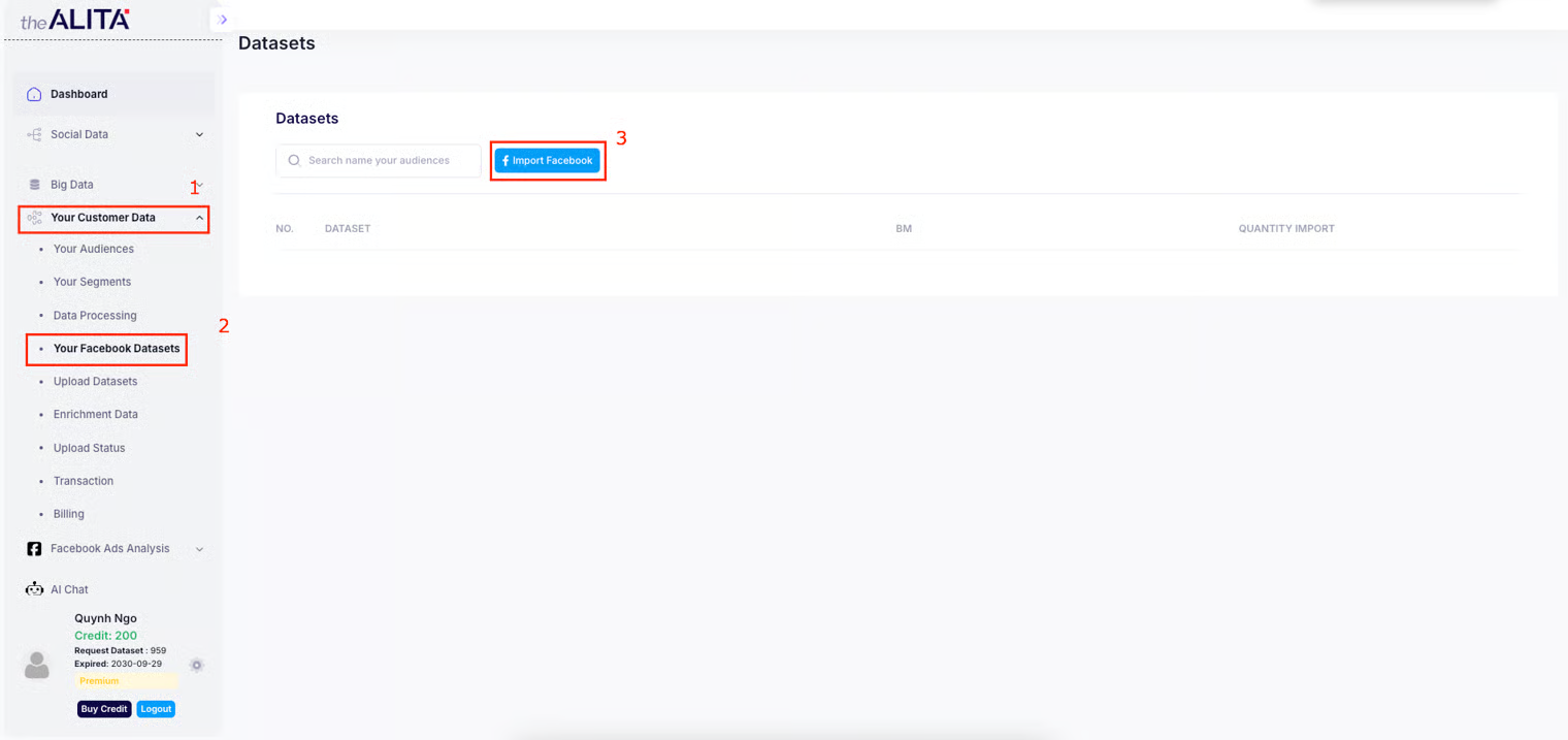 1. Access: **Your Customer Data > Your Facebook Datasets**