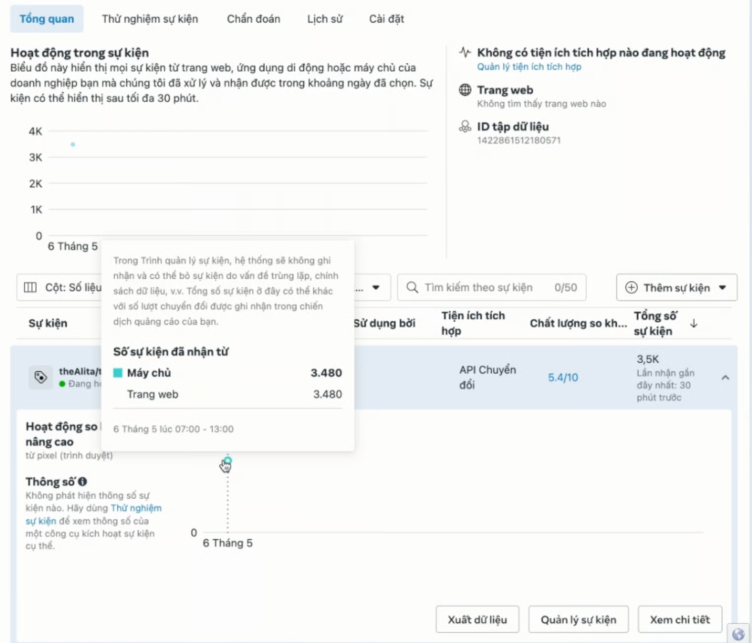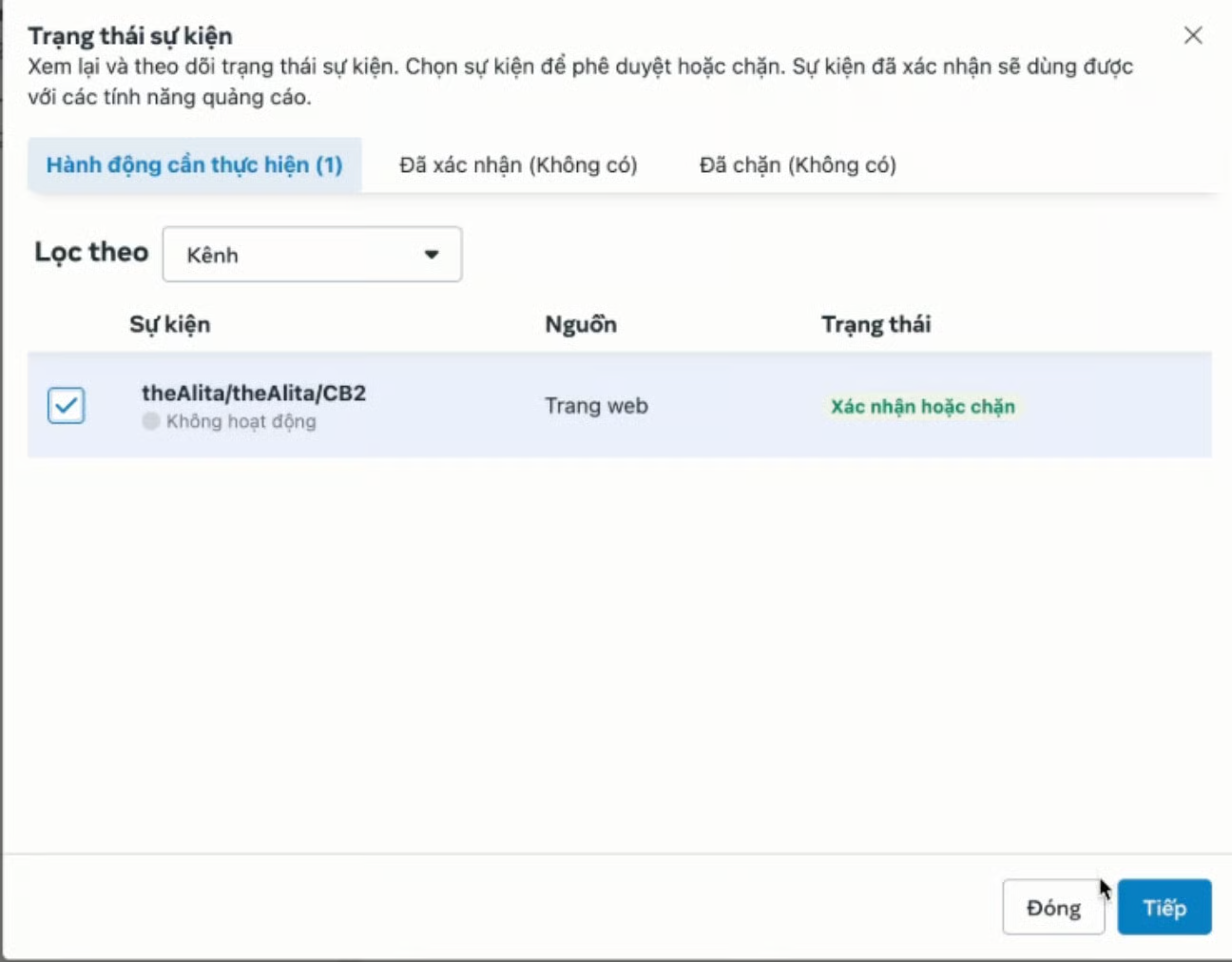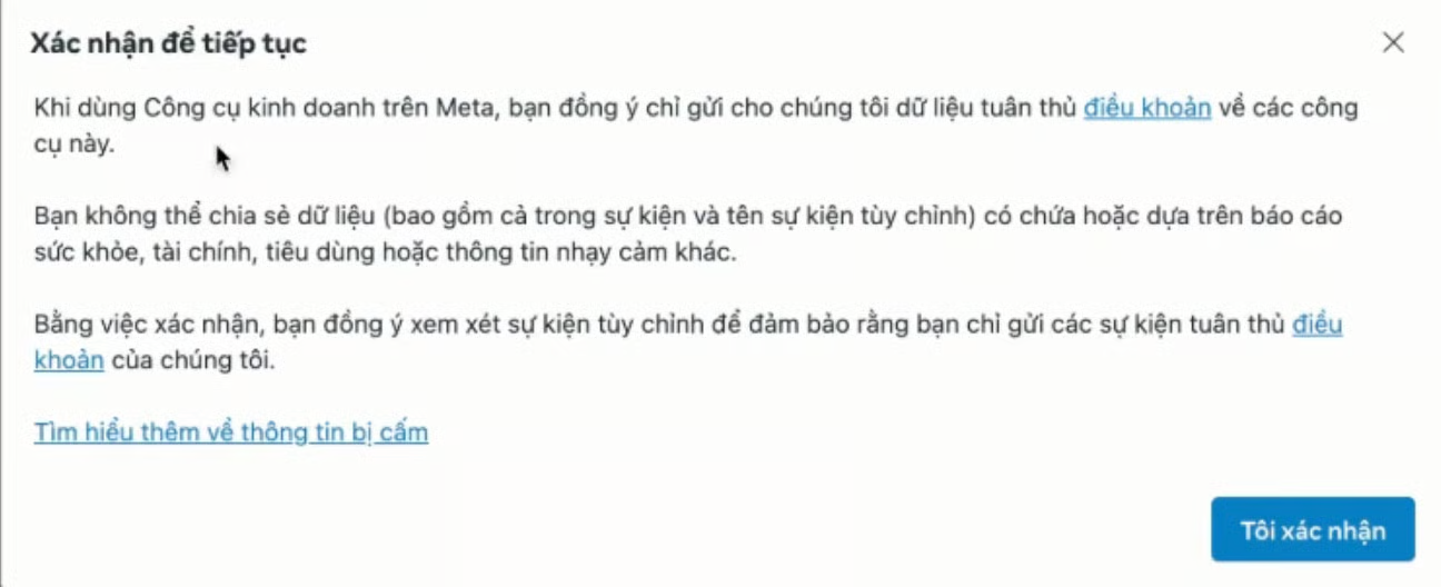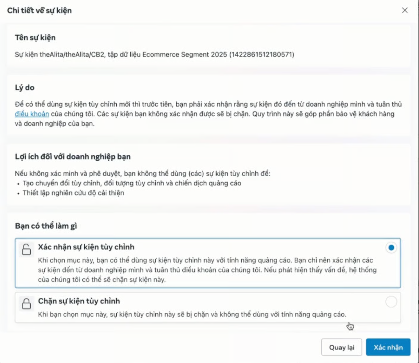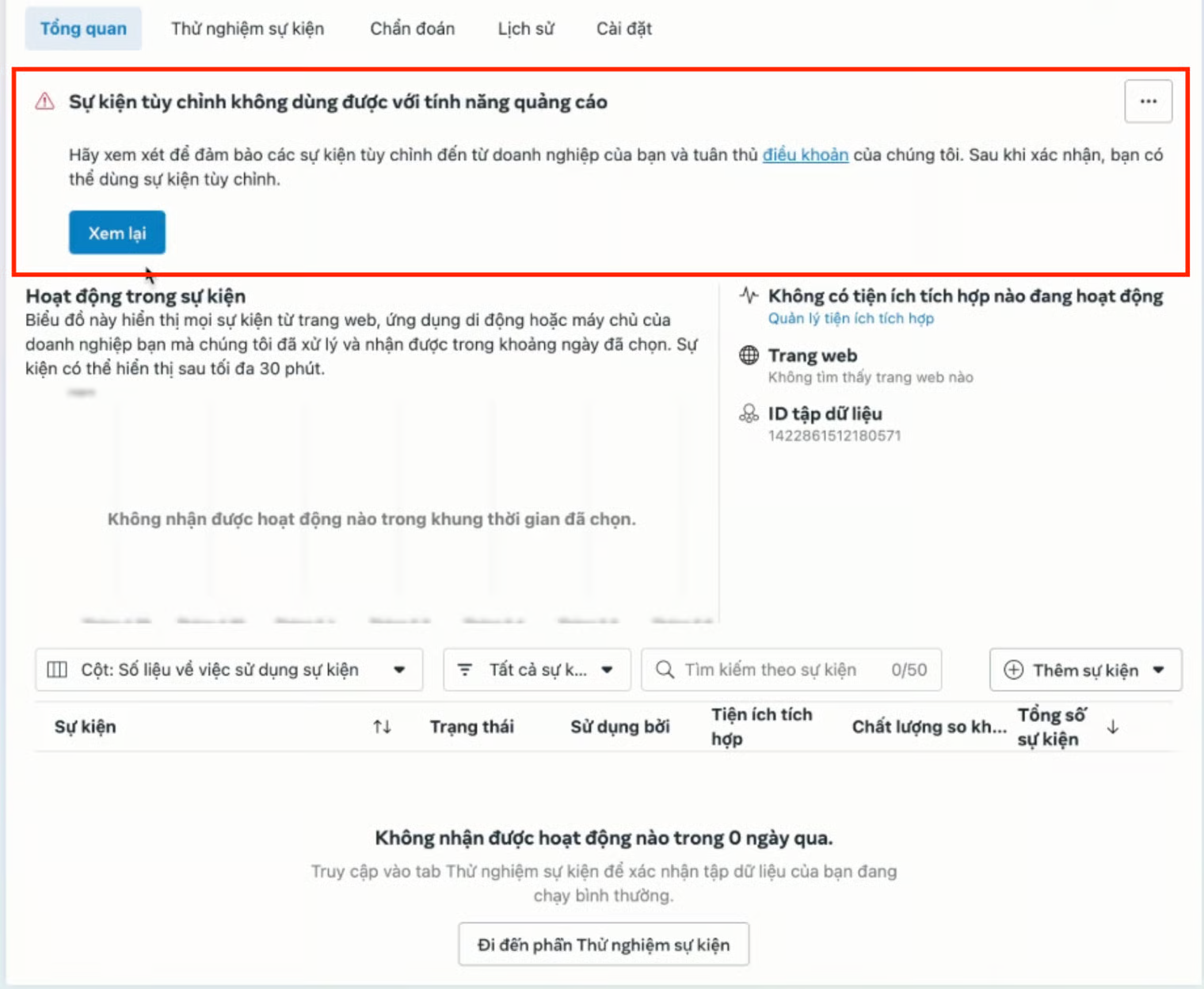 2. In the **Facebook Dataset**, a request to review Custom Events will appear as shown in the image.