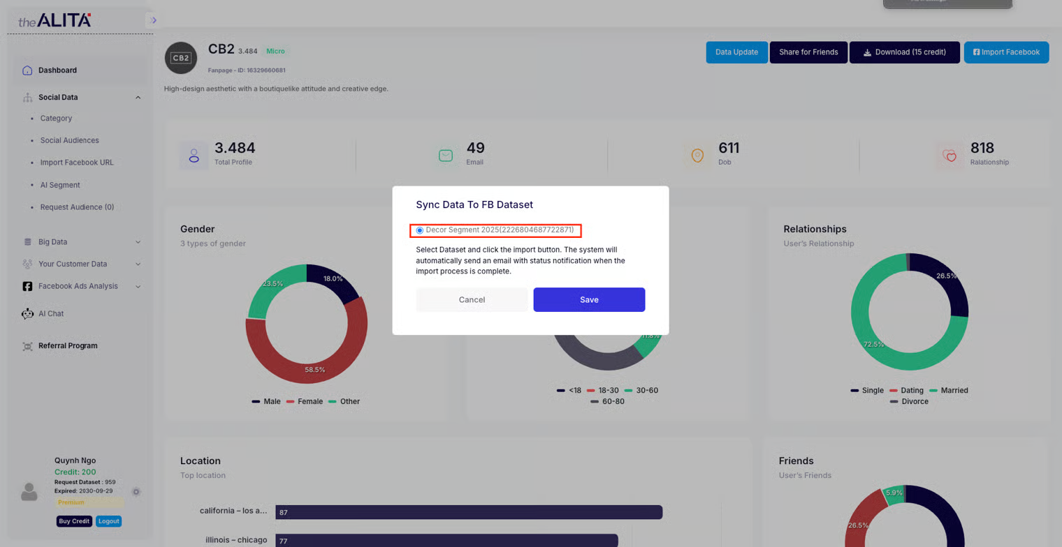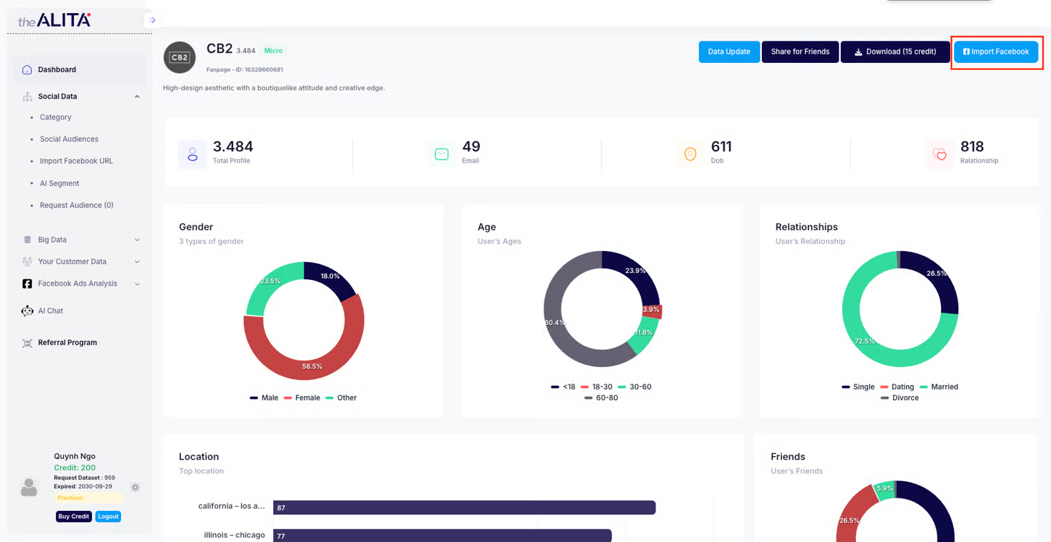 1. Access the **Social Data** section on TheAlita.